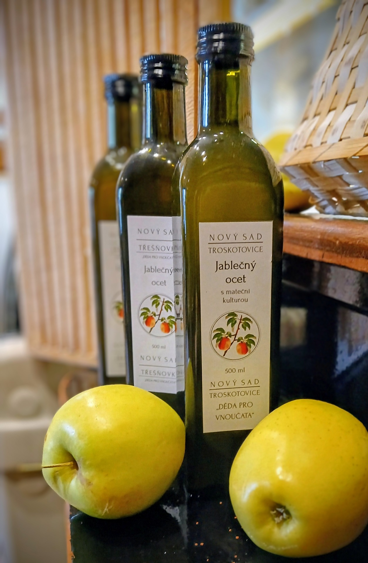 Jablečný ocet z jablek z moravského sadu. Nefiltrovaný, nepasterizovaný, přirozeně zakalený, vhodný k vnitřnímu i vnějšímu použití.
