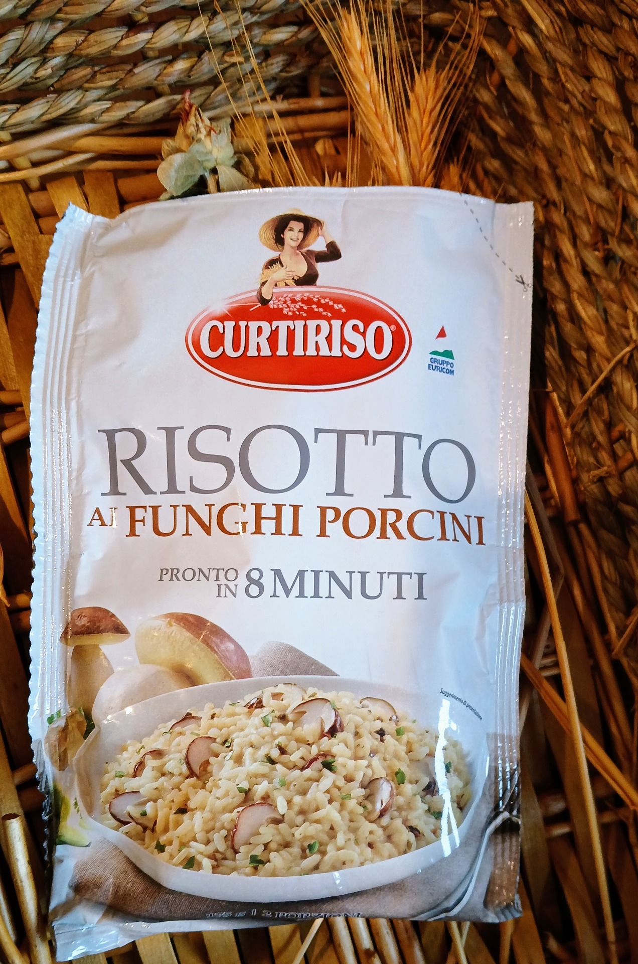 Sušené risotto vsypete do 500 ml chladné vody a pečlivě promícháte. Poté přivedete k varu a vaříte 8 minut. Můžete přidat kousky masa, máslo nebo zeleninu, ale není to nutné, pokrm je chuťově vyvážený, jemný, krémový.
