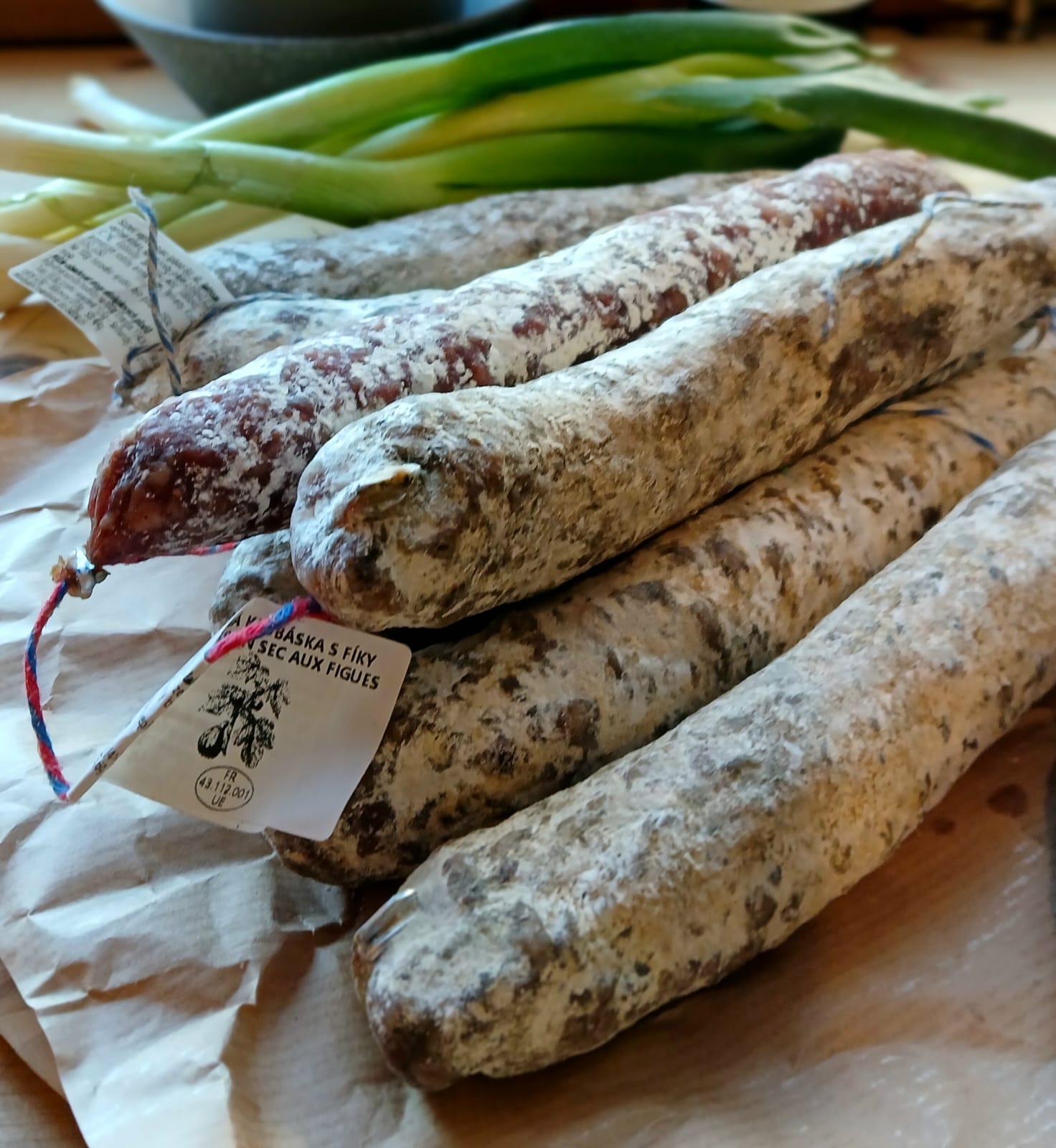 Suchá francouzská klobáska s ušlechtilou plísní je vyrobena převážně z vepřového masa. Zbývající procenta tvoří lahůdka, která je v klobásce příjemně zakomponována, což mohou být například fíky, liška (houba) nebo hříbek, modrý sýr, nebo oblíbený vlašský oříšek.