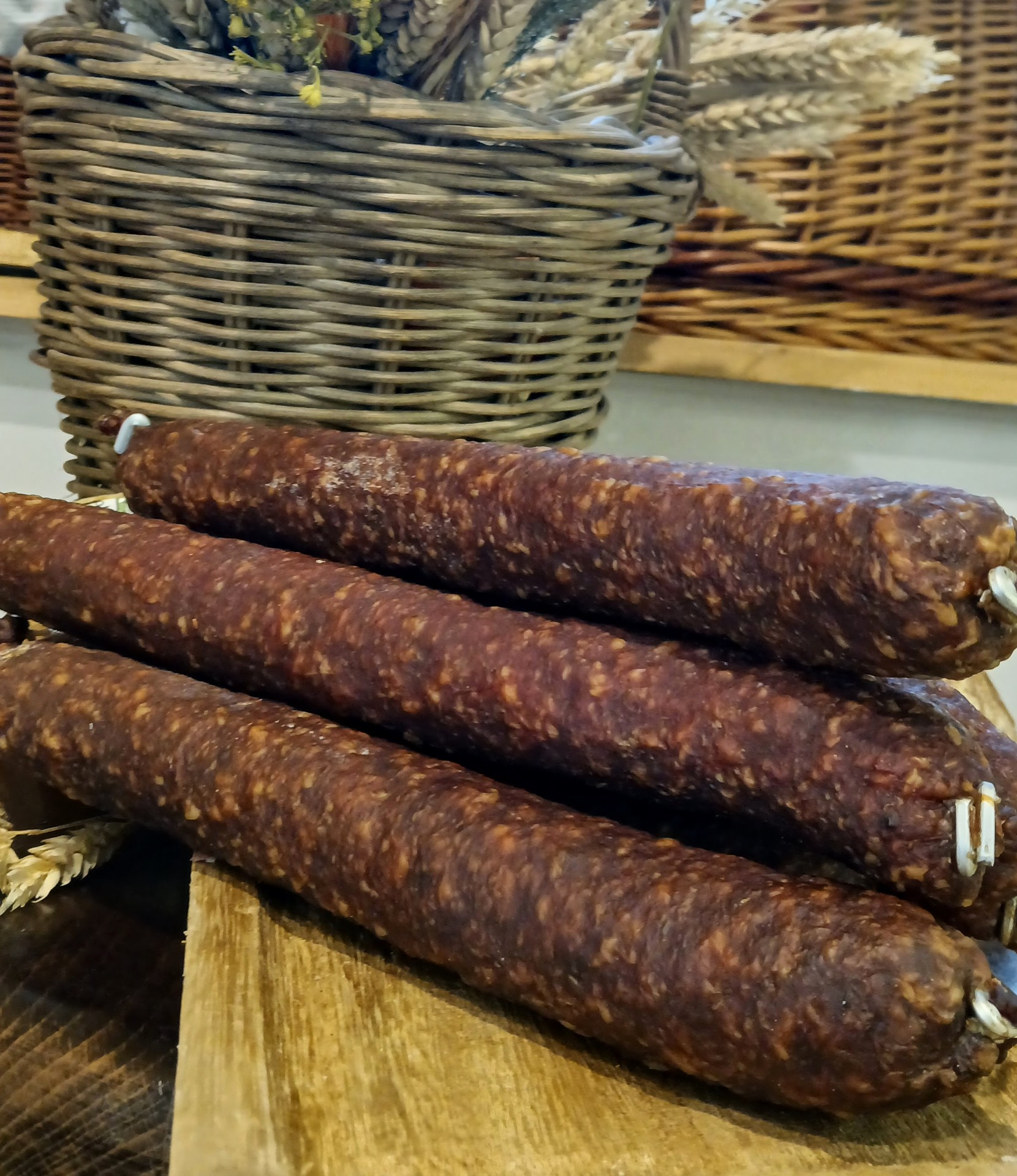 Tradiční italský hrubozrnný, suchý salám z kvalitního vepřového masa. Ručně vázaný salám s dlouhou dobou zrání je vynikající na předkrmy, do sendvičů, nebo samotný k vínu.